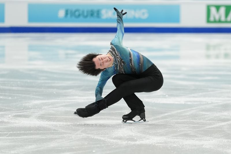 1月25日,中国选手金博洋在四大洲花样滑冰锦标赛男子单人滑自由滑比赛中(新华社)